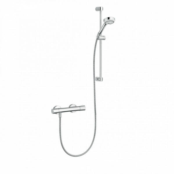 LEÍRÁS ÉS PARAMÉTEREK falra szerelhető KLUDI Zenta termosztátos zuhanycsaptelep (KL-351000538) átfolyási osztály: B (24 l/perc) hőfokszabályzó kar 38 °C-ra beállított reteszgombbal zárószeleppel 50% vízmennyiség-határoló reteszgombbal visszafolyásgátl óval szűrővel zuhanyc satlakozás: G1/2 falirúd 18 mm hosszúság: 60 cm függőlegesen állítható zuhanytartó csúszk