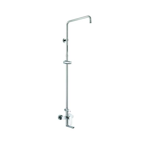 Műszaki adatok: Oszlop anyaga: rozsdamentes acél, ABS Oszlop befejezése: króm Magasság: 950 mm Oszlop szélesség: 22 mm Távolság a faltól: 380 mm Szappantartó Csúszó tartó a kézfejhez Állítható tartókonzolok Esőzuhany anyaga: műanyag Esőzuhany bevonat: króm / fehér Zuhanyfej mérete: ø225 mm Fej anyaga: műanyag A kézidarab felülete: króm / fehér Funkciók száma: 3 Csa