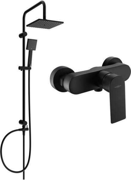Invena Musta zuhanyrendszer zuhanypolccal, 3 funkciós kézizuhannyal, matt fekete AU-84-D04-X Tulajdonságok Telepítés: falsíkon kívül Zuhanyrúd magassága: 990 mm Kinyúlási hossz: 340 mm Kerek, vékony fejzuhany átmérője: 250 mm Zuhanypolc mérete: 320x130 mm Gégecső hossza: 1500 mm Fejzuhannyal, kézizuhannyal Kádkifolyó nélkül Csaptelep nélkül Átfolyási osztály: A, A Átf