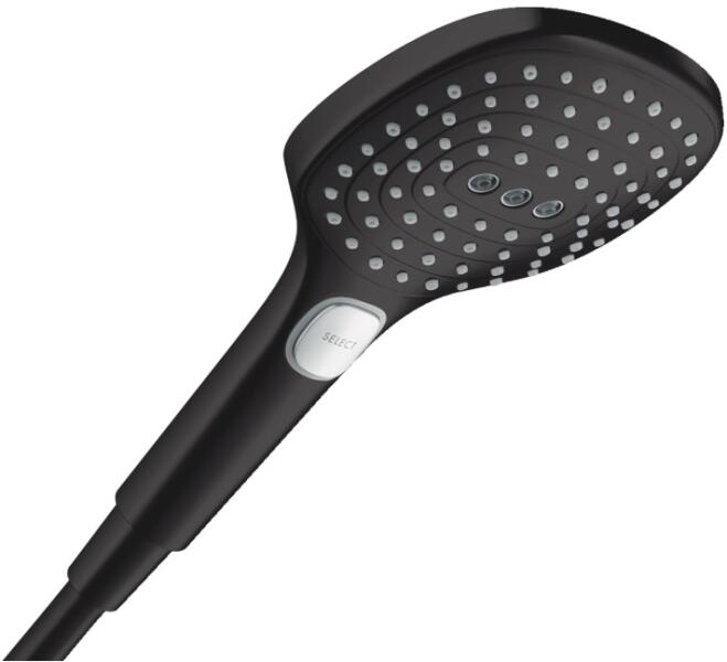 Hansgrohe Raindance Select E 120 3jet kézi zuhany, fekete 26520670 zuhanyfej mérete: 120 mm kényelmes vízsugár választás a Select gombbal vízsugár fajta: RainAir, Rain, Whirl maximális átfolyási mennyiség 3 bar mellett: 15 l/perc belső vízvezetéssel kiöblíthető beépített szűrővel csatlakozómenet G ½ Kérdés esetén munkatársaink szívesen segítenek.