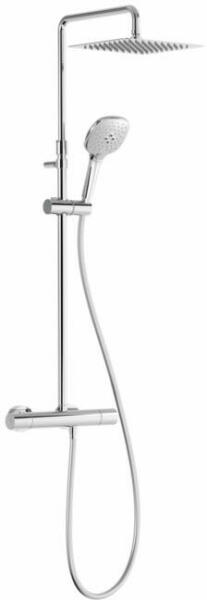 Zuhanyszett|Szín: króm|3 utas, mechanikus csaptelep|Magasság: min. 75,5 - max. 122 cm|Szélesség: 20 cm|Fejzuhany: 20x20 cm (szögletes)|Szükséges víznyomás: max. 5 bar|Kézizuhany: szögletes