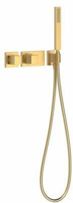 Falba építhető kivitel Tartalmazza a termosztátos belső egységet Vízkőmentesített kézi zuhannyal Szatén zuhanytömlővel Matt arany színben