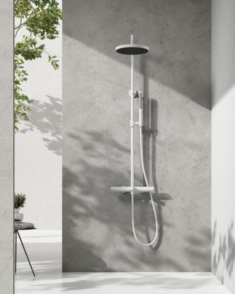 Arezzo design Elegant 3 funkciós termosztatikus zuhanyrendszer, matt fehér AR-3095MW Prémium kategóriás termék Garancia: 5 év Anyag: réz Falon kívüli szerelés Termosztátos kádcsapteleppel Zuhanyszettel Tartós, könnyen tisztítható felületek, magas élettartam PVD technológiával készült felület Szín: matt fehér A PVD egy olyan technológiai eljárás, amely során vékony be