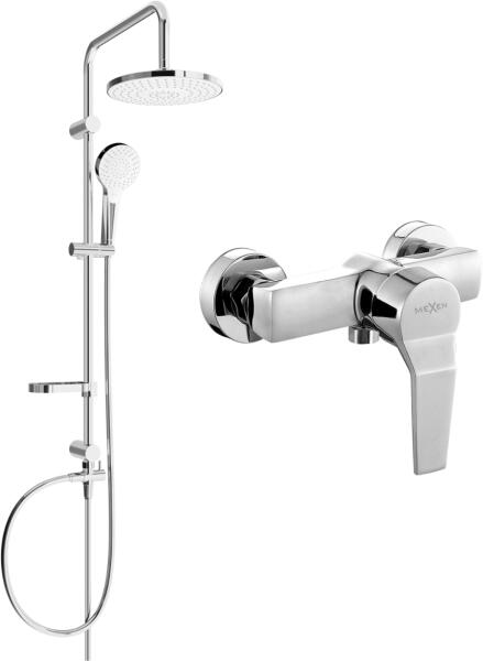 Mexen Erik zuhanygarnitúra kézi és esőzuhannyal és zuhanycsappal Caro, króm, 746640205-00 Gyártó: Mexen Sorozat: Erik + Caro Termékkód: 746640200-00 Falra szerelhető zuhanycsaptelep Mexen Caro - 746640-00 Test anyaga: sárgaréz Fej: kerámia Felület: króm Szerelési távolság: 150 +/- 15 mm Szélesség: 170 mm Mexen Erik zuhanyoszlop - 78205-00 Oszlop anyaga: rozsdamentes acél, ABS