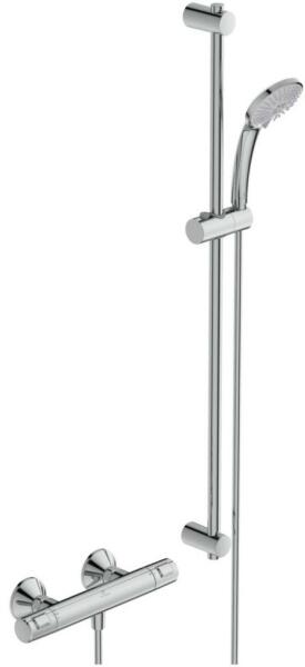 Termosztatikus fali zuhany csaptelep zuhanyszettel együtt. Króm kivitelben. A csaptelep térfogatárama 8 liter / perc.
