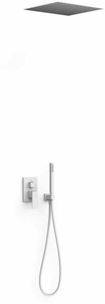 Falba építhető kivitel Tartalmazza a belső egységet Egykaros, kétutas zuhanycsaptelep 380 x 380 mm-es mennyezeti rozsdamentes acél fejzuhany Vízkőmentesített kézi zuhannyal és fali tartóval Szatén zuhanytömlővel Matt fehér színben