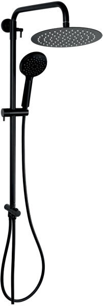 Első osztályú design fekete matrac. A készlet alkalmas alsó kivezetésű kád- vagy zuhanycsaphoz való csatlakoztatásra. A csomagban egy 250 mm átmérőjű fejzuhany, egy 150 cm-es fémtömlő és egy 1 állású kézizuhany található. A készlet magassága 890 - 1300 mm. A csomag egy 70 cm hosszú összekötő csövet tartalmaz.