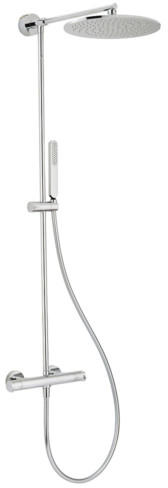Termék részletektermosztátos csaptelep felső kifolyócsővel víztakarékos ECO gomb és és biztonsági hőmérséklet STOP 38°C-on testbe integrált automata zuhanyváltó hideg érintésű csaptelep test vízkőmentes ovális zuhanyfej erősített fém gégecső (150 cm) vízkőmentes Icon kézizuhany (1 funkciós) állítható zuhanytartó felszállócső: 1145 mm magasságig 5 év garancia a csaptelep há