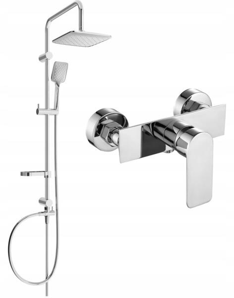 Mexen Sven zuhanygarnitúra esőfejjel és zuhanycsappal Alexa, króm, 71240262-00 Műszaki adatok: Oszlop anyaga: rozsdamentes acél, ABS Oszlop befejezése: króm Magasság: 950 mm Oszlop szélesség: 22 mm Távolság a faltól: 380 mm Csúszó tartó a kézfejhez Állítható tartókonzolok Esőzuhany anyaga: műanyag Esőzuhany felület: króm Esőzuhany mérete: 200 mm Fej anyaga: műanyag Fe