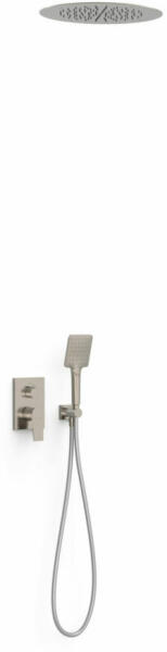 Tres Project falsík alatti zuhanyrendszer Rapid-Box belső egységgel, rozsdamentes acél hatású 21128060AC Falba süllyesztett szerelés, beépített RAPID-BOX Elzárás és áramlásszabályozás Rapid-bo x és rejtett test, gyorsan és egyszerűen telepíthető Rozsdamentes acélból készült zuhanyfej 380 mm Zuhanyfej rögzítése: mennyezet Zuhanytartó Vízkő elleni kézi zuhany 96x110