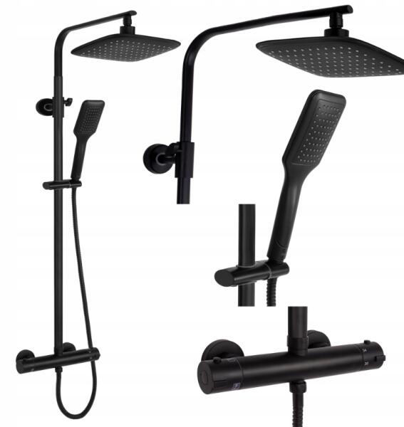 Rea Tom falon kívüli termosztátos zuhanyrendszer, matt fekete REA-P7101 Garancia: 24 hónap Telepítés: falon kívüli Anyag: sárgaréz/ABS Teljes magasság: 820-1200 mm (állítható) Fejzuhany mérete: 250 x 170 mm 1 funkciós fej és kézizuhany: eső Fúvóka rendszer: Anti-Calc (könnyű vízkőeltávolítás) Csaptelep típusa: termosztátos Csaptelep szerelési távolsága: 150 mm Zuha