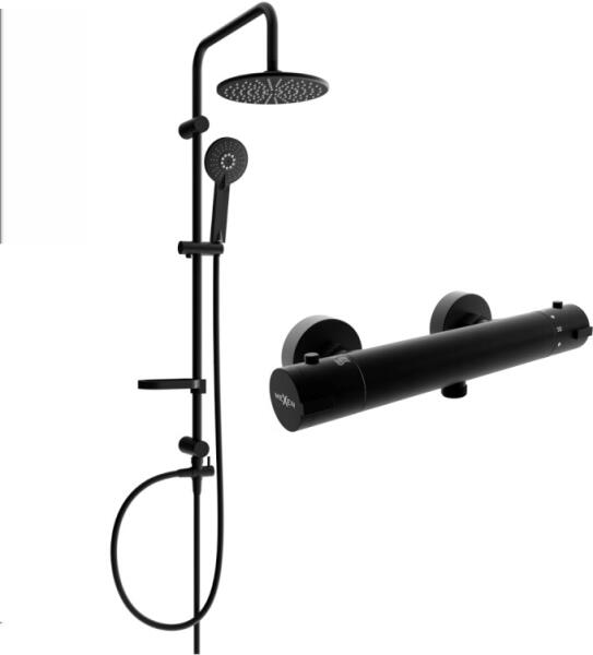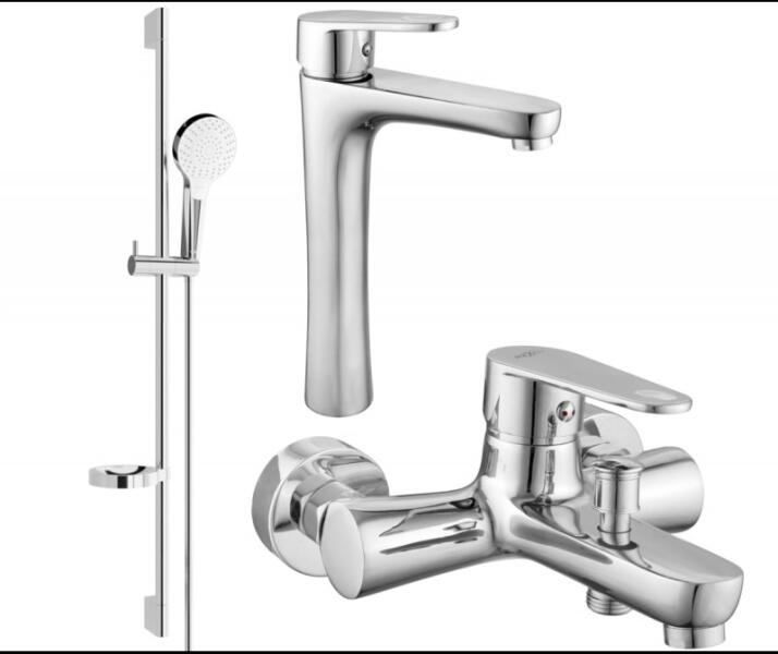 tartalmazza a következőket: zuhanycső, zuhanytömlő, zuhanytartó csúszkazuhanyoldali gömbcsukló a zuhanytömlő kellemetlen elfordulása ellencsőhossz: 1008 mmcső átmérője: 22 mmzuhanytartó rúd: kerekfúrási távolság: 915 mmfém kézizuhanytartóreteszelős kézizuhanytartó csúszkafokozatmentesen állítható csúszkaraszteres dőlésszögállításműanyag fali tartó