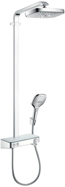 Hansgrohe Raindance Select E, Showerpipe 300 2jet EcoSmart 9 l/perc termosztáttal ShowerTablet Select 300, króm, HAN-27283000 Termékleírás és paraméterek Tartalma: fejzuhany, kézizuhany, zuhanytermosztát, zuhanytömlő, zuhanytartó Fejzuhany Raindance Select E 300 2jet Fejzuhany mérete: 300x160 mm A felső zuhany átfolyásának típusa: RainAir, Rain Kényelmes áramkiválasztás a Sel