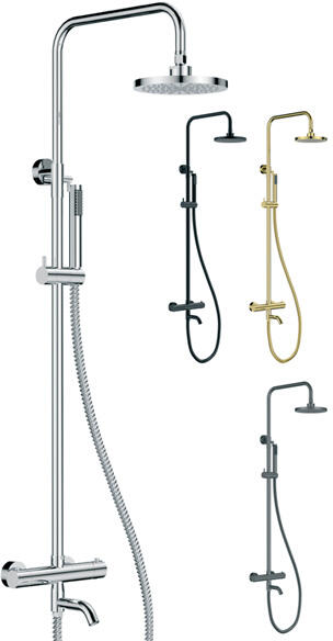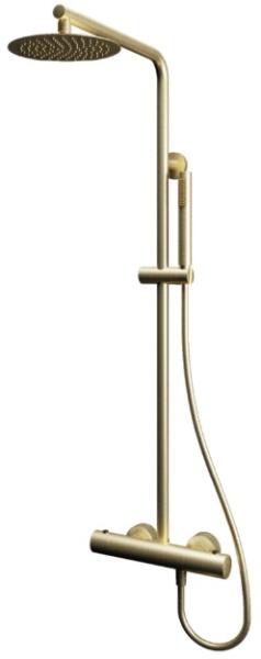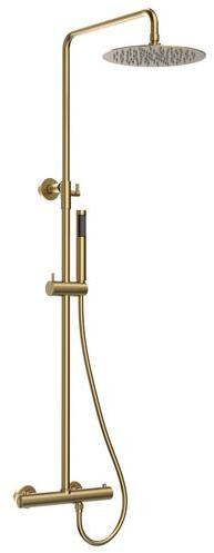 Termosztátos zuhanyoszlop|Szín: szálcsiszolt arany|2 funkciós kézizuhany|Esőztető: átmérő 25 cm