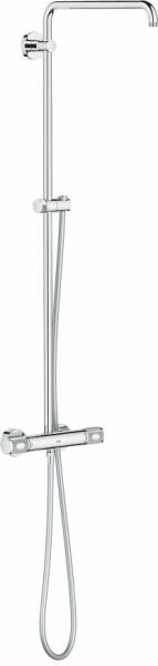 TERMÉKLEÍRÁS Szín: króm az alábbiakból áll: vízszintesen 45°-ban elfordítható, 450 mm-es zuhanykar falon kívüli termosztát Aquadimmerrel csúszó elem (kézizuhany-tartó) Silverflex zuhanygégecső 1750 mm (28 388 000) GROHE TurboStat tágulótestes termoelem GROHE SafeStop fogantyú 38°C-nál biztonsági retesszel GROHE SafeStop Plus opcionális hőmérséklet maximalizáló 43°