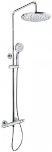 Termosztátos csaptelep Nemzetközi szabadalom Biztonsági hőmérséklet STOP 38°C-on Integrált zuhanyváltó Állítható teleszkópos felszállócső az egyszerűbb szerelés érdekében: - Min. magasság: 790 mm - Max. magasság: 1300 mm Vízkőmentes ABS 250 mm zuhanyfej Magas minőségű fém 1,5 m gégecső Állítható kézizuhany tartó