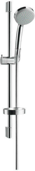 Hansgrohe Croma 100, Vario zuhanygarnitúra zuhanyrúddal 65 cm és szappantartóval, króm, HAN-27772000 Termékleírás és paraméterek Zuhanyfej mérete: 100 mm Áramlat típusa: Eső, samponos öblítőpatak, normál áramlás, masszázssugár Áramtípusok kapcsolása a forgó fejnek köszönhetően A dőlésszög 90°-ban állítható, a csúszka balra-jobbra, fel-le mozgatható Maximális