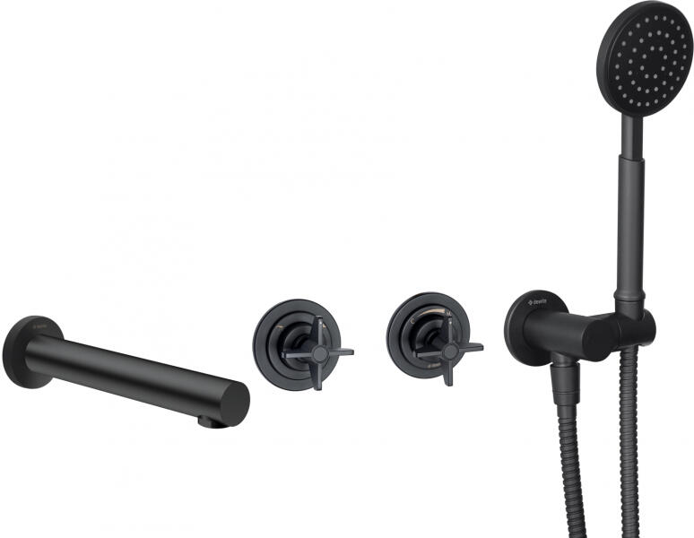 Deante Temisto falsík alatti zuhanyszett kádkifolyóval, matt fekete NAC_N9TQTervezés, amely összeköti a múltat ?a jövővel: A termékkollekció ötvözi a stílust a modern technológiával. A sorozat csaptelep és esőzuhanyai retró hangulatot idéznek, stilizált gombjaikkal hívják fel magukra a figyelmet, miközben nagyon modern burkolati technológiával büszkélkedhetnek. Az egyes