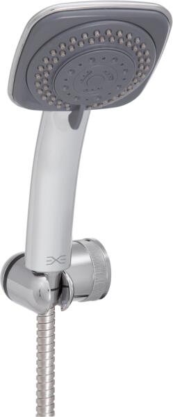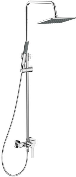 Falon kívüli kivitel 310 mm-es gömbcsuklós fejzuhannyal Teleszkópos zuhanyrúddal 78 mm-es vízkőmentesített kézi zuhannyal Duplán reteszelt zuhanytömlővel Zuhanyváltó beépített átfolyáskorlátozóval Króm kivitel