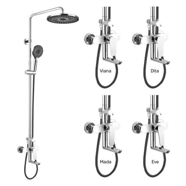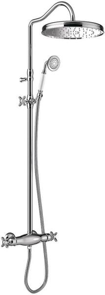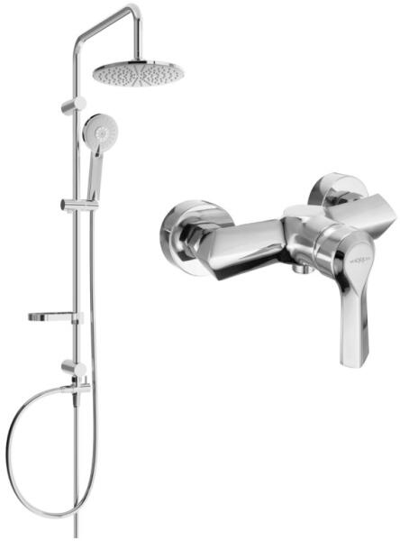 Laveo Pinar, zuhanygarnitúra kézi és fejzuhannyal, króm, LAV-PAW_00KB A Pinar króm oszlop egy modern modell, amely minden klasszikusan berendezett fürdőszobában jól használható. A geometrikus, lekerekített testformák, az esőzuhany és a kézibeszélő, valamint a lapos kar elegáns megjelenést kölcsönöz neki. A modell zárt és nyitott zuhanykabinban is jól mutat. A sima felüle