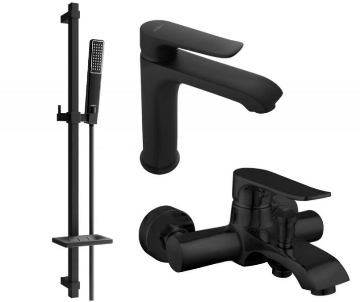 Típus: Zuhanyszett|Anyag: fém és műanyag|Szín: matt fekete|Szett: Felső esőztetővel zuhanyváltóval gégecsővel zuhanyfejjel