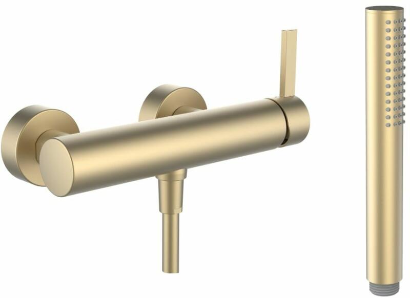 Falba építhető kivitel Tartalmazza a termosztátos belső egységet Vízkőmentesített kézi zuhannyal Szatén zuhanytömlővel Matt arany színben