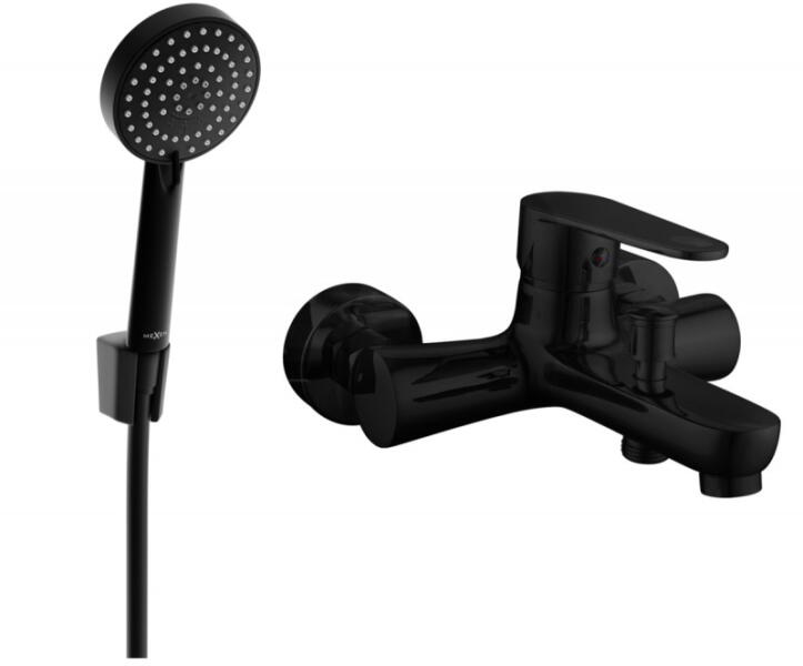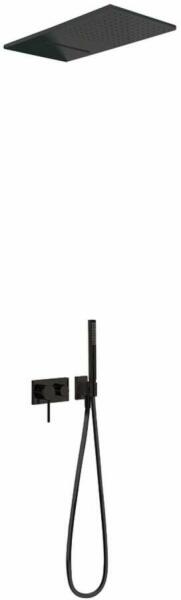 Falba építhető kivitel Tartalmazza a 3 utas belső egységet is 280 x 550 mm-es rozsdamentes acél mennyezeti fejzuhannyal Vízkőmentesített kézi zuhannyal és fali tartóval Szatén zuhanytömlővel Matt fekete színben