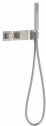 Falba építhető kivitel Tartalmazza a belső termosztátos egységet Átfolyáskorlátozóv al Vízkőmentesített kézi zuhannyal és fali tartóval Szatén zuhanytömlővel Acél színben