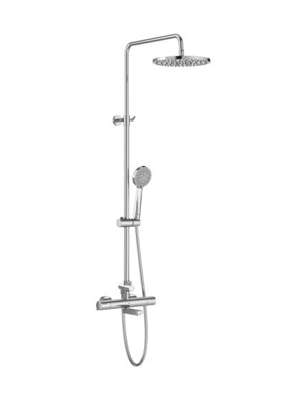 Termosztátos zuhany csaptelep Állítható teleszkópos felszállócső (min. magasság 97 cm, maximum magasság 131 cm) Vízkőmentes Ø25 cm zuhanyfej 1 funkciós kézizuhany 1.5 m-es magas minőségű, flexibilis gégecső Állítható kézizuhany tartó Biztonsági hőmérséklet stop 38 °C-on Hideg érintés rendszer Integrált automata zuhanyváltó Visszaáramlásgá tló szelep Szűrőve