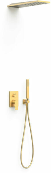 Tres Project falsík alatti zuhanyrendszer Rapid-Box belső egységgel, matt arany 21128005OM Falba süllyesztett szerelés, beépített RAPID-BOX Elzárás és áramlásszabályozás Rapid-bo x és rejtett test, gyorsan és egyszerűen telepíthető Rozsdamentes acélból készült fix zuhanyfej 160x550 mm Zuhanyfej rögzítése: fali Zuhanytartó Víz kő elleni kézi zuhany (sárgaréz) Szatén