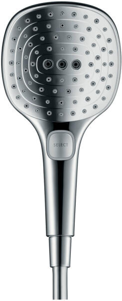 Hansgrohe Raindance Select E króm kézi zuhanyfej 120 3jet 26520000 zuhanyfej mérete: 120 mm kényelmes vízsugár választás a Select gombbal vízsugár fajta: RainAir, Rain, Whirl maximális átfolyási mennyiség 3 bar mellett: 15 l/perc belső vízvezetéssel kiöblíthető beépített szűrővel csatlakozómenet G ½ átfolyós vízmelegítőkhöz alkalmas Kérdés esetén munkatársaink s
