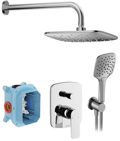 Classic hatrészes zuhanygarnitúra falba süllyesztett csapteleppel. Fényes króm kivitelben. Leírás csaptelep (átmérő, anyaga): 35 mm, kerámia, R-Boxhoz készült fejzuhany mérete: 250 x 250 mm fejzuhany kialakítás: levegő funkció kézizuhany átmérője: 120 mm kézizuhany kialakítás: 3 vízáramlási funkció – rain, jet, rain + jet zuhanyfúvókatisztító rendszer: EasyClean