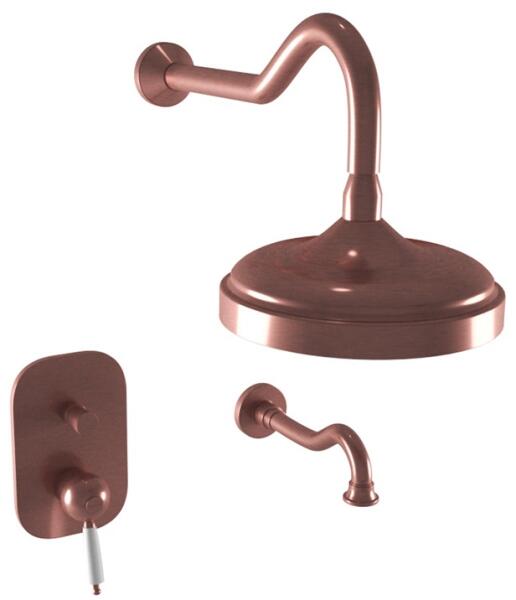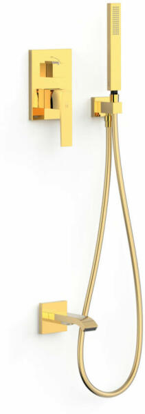 Falba építhető belső egységgel 2 utas, egykaros keverőcsaptelep Átfolyáskorl tozóval Kádtöltő V zkőmentes kézi zuhannyal és fali tartóval Szatén zuhanytömlővel Arany színben