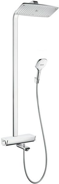 Hansgrohe Raindance Select S 300 2jet Zuhanyrendszer fehér 27133 400 króm/fehér Raindance Select S 300 2jet fejzuhany fejzuhany mérete 300mm vízsugár típusa: Rain, RainAir Select gomb segítségével kiválasztható vízsugár Rain átfolyási mennyisége 3 bar-nál:17 liter/perc RainAir átfolyási mennyisége 3 bar-nál: 17 liter/perc 460 mm-es forgatható zuhanykar Ecostat Comfort termos