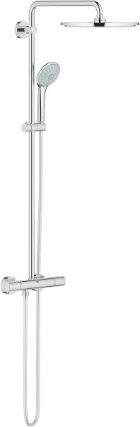Grohe Euphoria XXL System 310 zuhanyrendszer termosztátos csapteleppel 26384 000 (26384000) vízszintesen elfordítható, 450 mm-es zuhanykar falon kívüli termosztát Aquadimmerrel GROHE TurboStat® tágulótestes termoelem Rainshower® Cosmopolitan 310 fém fejzuhany Grohe EcoJoy 12 l / perc Szórás típusa: Rain gömbcsuklóval forgási szög ± 15 ° kézizuhannyal Euphoria 110 masszázs Gr
