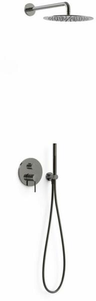 Falba építhető kivitel Tartalmazza a belső egységet Egykaros zuhanycsaptelep 300 mm-es gömbcsuklós oldalfali fejzuhannyal Vízkőmentesített kézi zuhannyal és fali tartóval Szatén zuhanytömlővel Metál fekete színben