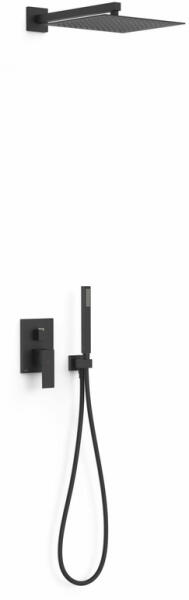 Falba építhető kivitel Tartalmazza a belső egységet Egykaros, kétutas zuhanycsaptelep 300 x 300 mm-es fali rozsdamentes acél fejzuhany gömbcsuklóval Vízkőmentesít ett kézi zuhannyal és fali tartóval Szatén zuhanytömlővel Matt fekete színben