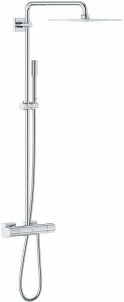az alábbiakból áll: vízszintesen 45°-ban elfordítható, 450 mm-es zuhanykar falon kívüli termosztát Aquadimmerrel lehetővé teszi a vízkimenetek közti váltást Rainshower F-Series 10" fejzuhany (27 271 000) anyag: fém gömbcsuklóval elfordítási tartomány ± 20° Sena kézizuhany (28 034 000) magasságban állítható csúszóelemmel (12 140) GROHE TurboStat tágulótestes termoel