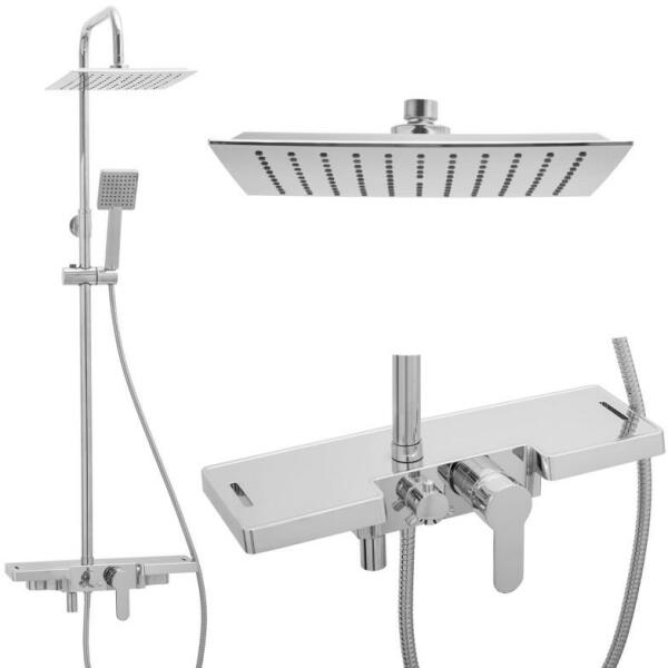 Erga Oslo, zuhanygarnitúra karos csapteleppel és polccal, króm, ERG-YKA-BP. OSLO-25-CHR Műszaki adatok Gyártó: Erga Anyaga: sárgaréz / ABS műanyag Szín: króm Állítható magasságú zuhanyoszlop 85 - 115 cm Fej: Kerámia 35 mm, mechanikus Szett típusa: Falra szerelhető, kétlyukú, egykaros, kapcsolóval, esőzuhanyfejjel 25 x 25 cm és kézi zuhannyal Csatlakozás: 1/2 hüvelyk Flow