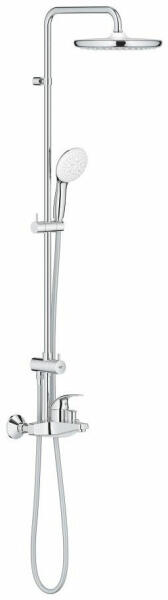 TERMÉKLEÍRÁS Szín: króm rövid zuhanysínnel, a zuhanyzókba történő felszereléshez az alábbiakból áll: vízszintes 355 mm zuhanykar falsíkon kívüli, egykaros kádcsaptelep irányváltós fogantyúval lehetővé teszi a vízkimenetek közti váltást Tempesta 250 fejzuhany (26 666) zuhanysugár: Rain funkció fejzuhany fehér hátlappal gömbcsuklóval forgási szög ± 10° kádkif