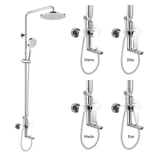 A zuhanykészlet tartalmaz egy Viana kádcsaptelepet zuhanygarnitúrával és egy forgatható kifolyóval a kád vagy vödör feltöltéséhez, egy háromállású kézizuhanyzót és egy 220 mm átmérőjű kerek lapos zuhanyt. A zuhany egy szabványos 1/2"-os menettel van felszerelve a zuhanytömlő csatlakoztatásához. Egy dupla zárású, 150 cm-es rozsdamentes acél csatlakozótömlő is tar
