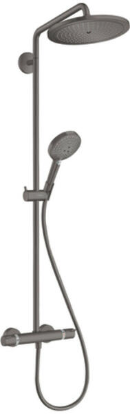 Hansgrohe Croma Select S, Showerpipe 280 1jet EcoSmart 9 l/perc termosztáttal és kézizuhannyal Raindance Select S 120 3jet, szálcsiszolt fekete króm, HAN-26891340 Termékleírás és paraméterek Tartalma: fejzuhany, kézi zuhany, zuhany termosztát, zuhanytömlő, csúszka, zuhanyrúd Croma 280 fejzuhany Fejzuhany mérete: 280 mm A fejzuhany átfolyási típusa: RainAir Golyócsukló - a fel