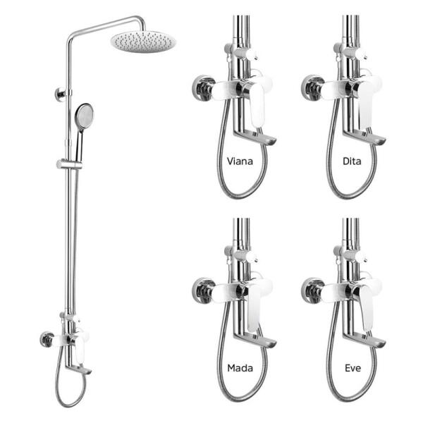 A zuhanykészlet tartalmaz egy kádcsaptelepet zuhanygarnitúrával és egy forgatható kifolyóval a kád vagy vödör feltöltéséhez, egy háromállású kézizuhanyzót és egy 200 mm átmérőjű vékony, kerek lapos zuhanyt. A zuhany egy szabványos 1/2"-os menettel van felszerelve a zuhanytömlő csatlakoztatásához. Egy dupla zárású, 150 cm-es rozsdamentes acél csatlakozótömlő is