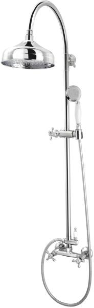 Műszaki adatok: Oszlop anyaga: rozsdamentes acél, ABS Oszlop befejezése: króm Magasság: 950 mm Oszlop szélesség: 22 mm Távolság a faltól: 380 mm Szappantartó Csúszó tartó a kézfejhez Állítható tartókonzolok Esőzuhany anyaga: műanyag Esőzuhany bevonat: króm / fehér Zuhanyfej mérete: ø225 mm Fej anyaga: műanyag A kézidarab felülete: króm / fehér Funkciók száma: 3 Csa