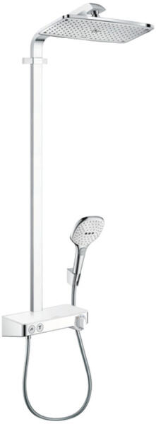 Hansgrohe Raindance E, Showerpipe 360 1jet termosztáttal ShowerTablet Select 300, fehér/króm, HAN-27288400 Termékleírás és paraméterek Tartalma: fejzuhany, kézi zuhany, zuhany termosztát, zuhanytömlő, zuhanytartó, zuhanyrúd Raindance E 360 Levegős fejzuhany Fejzuhany mérete: 360x190 mm Fejzuhany áramlási típusa: RainAir Golyócsukló: állítható zuhanyfej dőlésszöge B
