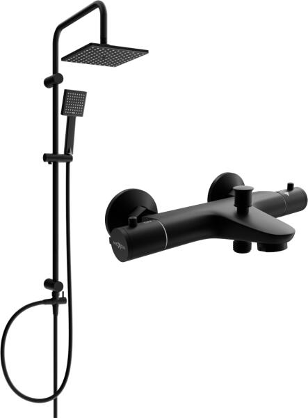 Műszaki adatok: Oszlop anyaga: rozsdamentes acél, ABS Oszlop felület: fekete Magasság: 950 mm Oszlop szélesség: 22 mm Távolság a faltól: 380 mm Szappantartó Csúszó tartó a kézfejhez Állítható tartókonzolok Esőzuhany anyaga: műanyag Esőzuhany kivitel: fekete Zuhanyfej mérete: ø220 mm Fej anyaga: műanyag A kézidarab felülete: fekete Funkciók száma: 3 Csatlakozás: G 1/2 "