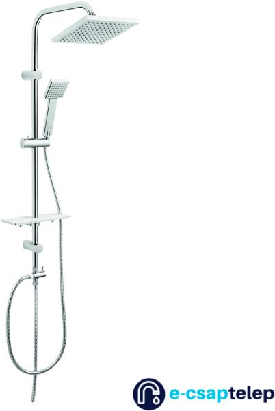 Termék tulajdonságok: fém zuhanyrúd 98,5 cm állítható zuhanytartó – falon már meglévő furatba illeszthető fejzuhany mérete 20x20 cm 1 funkciós kézizuhany EasyClean a vízkő gyors eltávolításához fém zuhanycső 150 cm 50 cm csatlakozócső (G1/2) univerzális bármely kád- és zuhanycsaptelephez kerámia betétes fém zuhanyváltó praktikus állítható polc a kozmetikumokh
