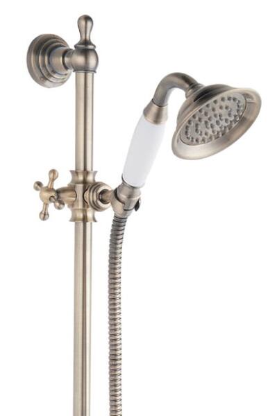 Retro Old Bronze rudas zuhanyszett, bronz N160BR 78 cm-es fém zuhanyrúd állítható zuhanytartóval 1 funkciós kézizuhany (eső) kézizuhany átmérője: 9 cm Ferro Easy Clean a vízkőlerakódás könnyű eltávolításához sárgaréz bevonatos 150 cm-es zuhanycső kónuszos vég kivitel: antik bronz Kérdés esetén keresse kollégáinkat!