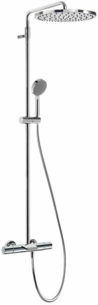 Zuhanyszett|Szín: króm|2 utas, termosztatikus csaptelep|Magasság: min. 77 - max. 123 cm|Szélesség: 20 cm|Fejzuhany: 20x20 cm|Szükséges víznyomás: max. 5 bar