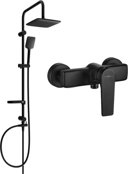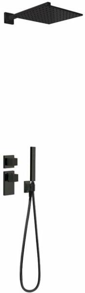 Termosztátos zuhanyrendszer, szögletes fejzuhany és kézizuhany MATT FEKETE színben